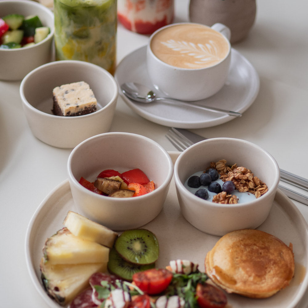 Freue dich auf eine abwechslungsreiche Auswahl aus unserem Brunch-Angebot – von frischem Brot und Aufstrichen über Pancakes, Joghurt & Granola bis hin zu kleinen saisonalen Specials. Dazu servieren wir dir natürlich unsere Kaffeespezialitäten und weitere Drinks aus unserer Bar.