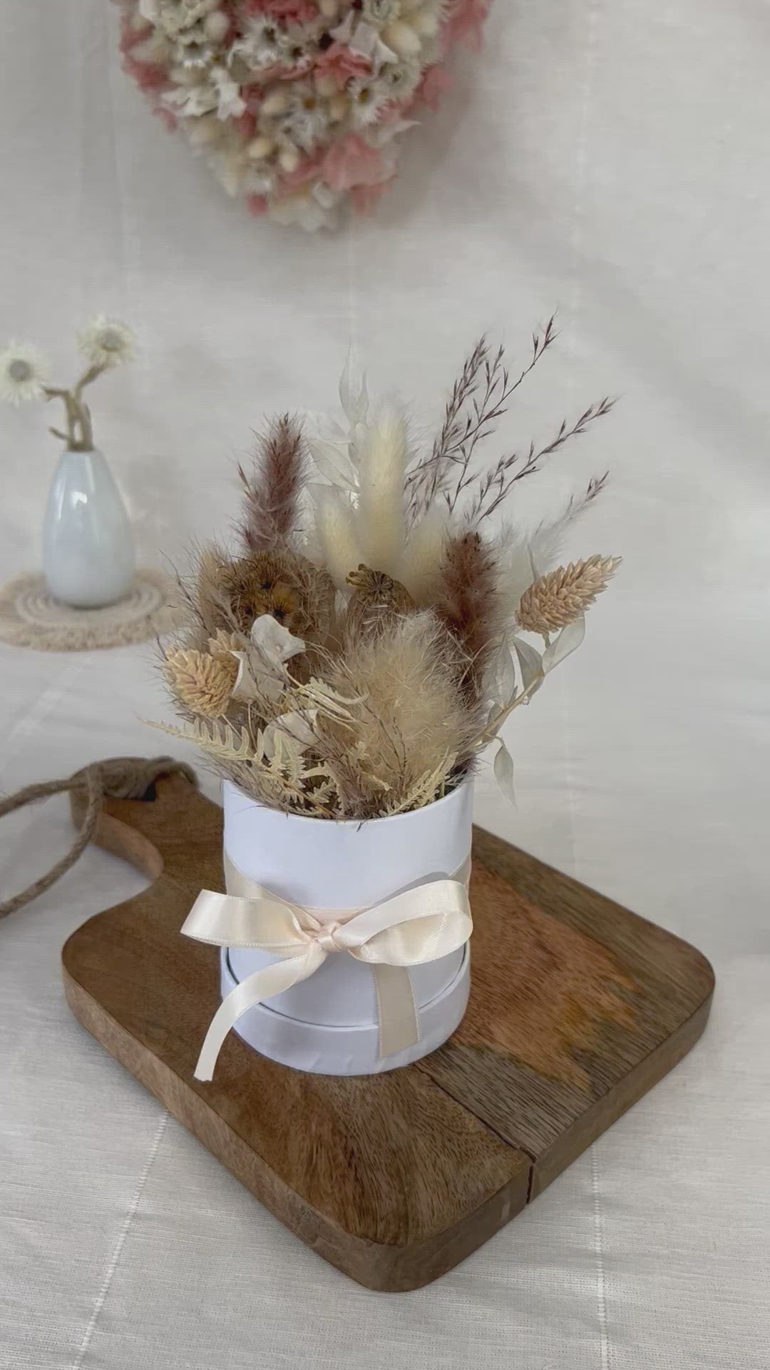 Unsere Flowerbox ist eine Kombination von verschiedenen Trockenblumen in Naturtönen. Sie ist das perfekte Geschenk um jemand ein Lächeln ins Gesicht zu zaubern oder um sich selbst eine Freude zu machen.